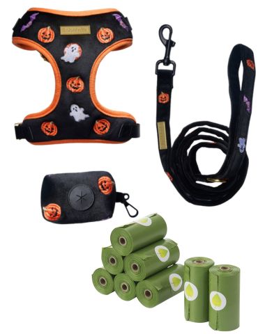 Rendez cette saison d'Halloween inoubliable avec le harnais pour chien en velours Bobotails. Doté d'une surface en velours doux et de broderies ludiques sur le thème d'Halloween, c'est le harnais idéal pour un chien qui allie plaisir festif et confort au quotidien.